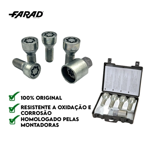 Compatível com diversos modelos de Audi, Chery, BYD, Ford, Omoda, e Volkswagen, o antifurto FARAD garante proteção sem comprometer o design das rodas.