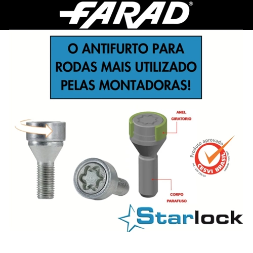 O Antifurto de Rodas FARAD Starlock Zincado (Cód. ZA/E) é desenvolvido para oferecer proteção total contra furtos, com o mesmo padrão de qualidade utilizado pelas montadoras europeias.