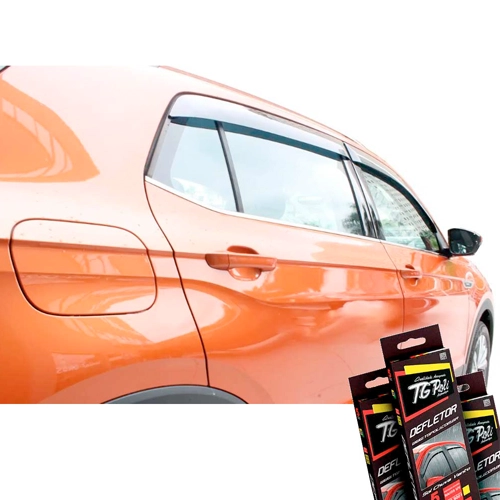 Fabricada em material durável e com encaixe sob medida, a calha de chuva TG Poli permite abrir parcialmente os vidros em dias chuvosos sem a entrada de água no interior do veículo. Além disso, melhora a circulação de ar, reduz o embaçamento dos vidros e valoriza o design do T-Cross, conferindo um toque moderno e funcional.