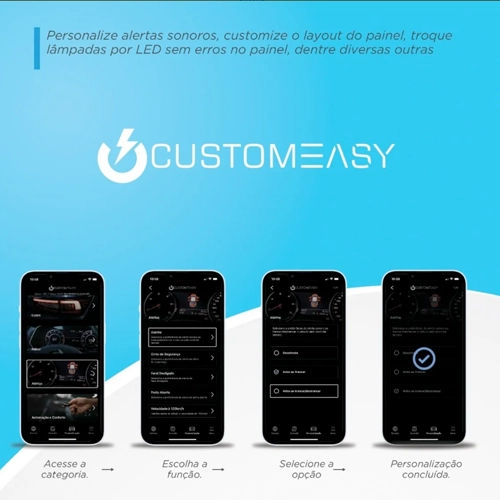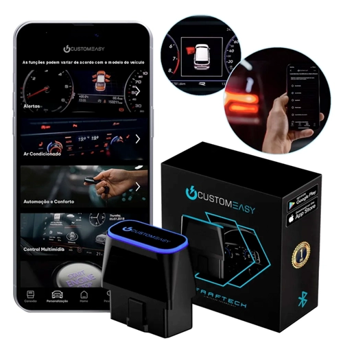 Ideal para lojistas, oficinas e instaladores automotivos, o CustomEasy elimina a necessidade de módulos, interfaces e adaptações manuais — basta conectar o dispositivo na porta OBD do veículo e seguir as instruções no aplicativo.
