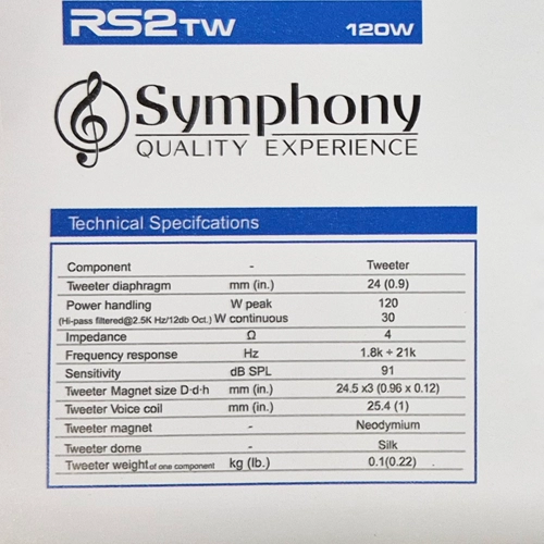 • 2 Tweeter 2 Polegadas Relm Audio 120 W 4 Ohms Symphony RS2 TW