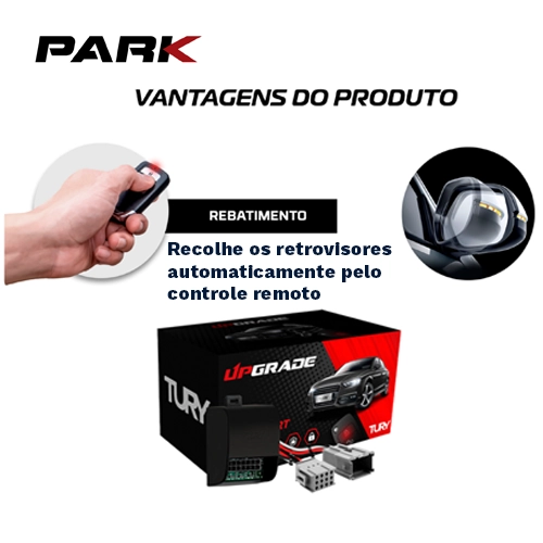 Pertencente à Linha PARK da Tury, o módulo adiciona funções inteligentes de automação para os espelhos retrovisores originais, proporcionando mais praticidade no dia a dia e auxiliando em manobras.